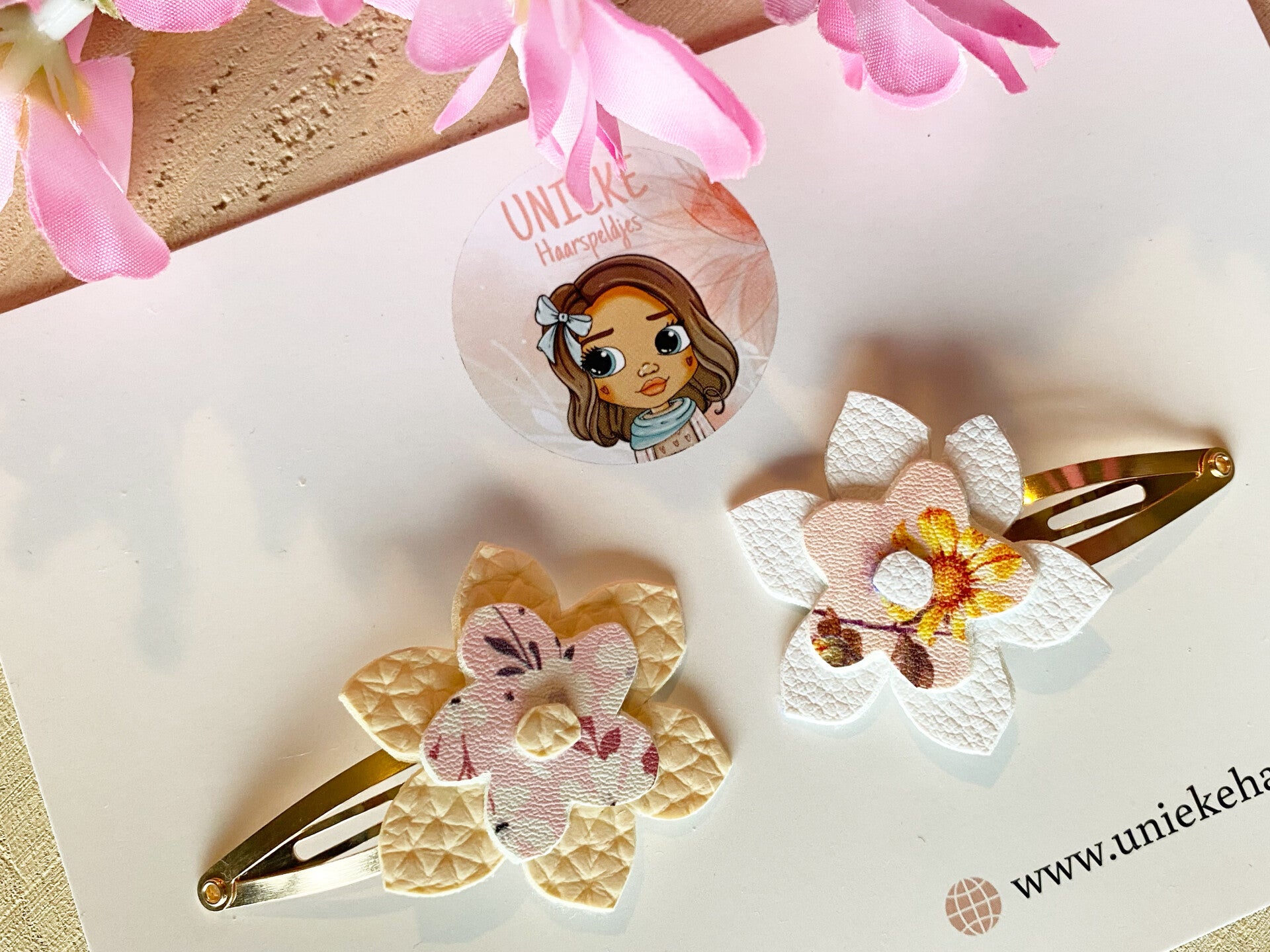 Setje van 2 haarspeldjes met bloem